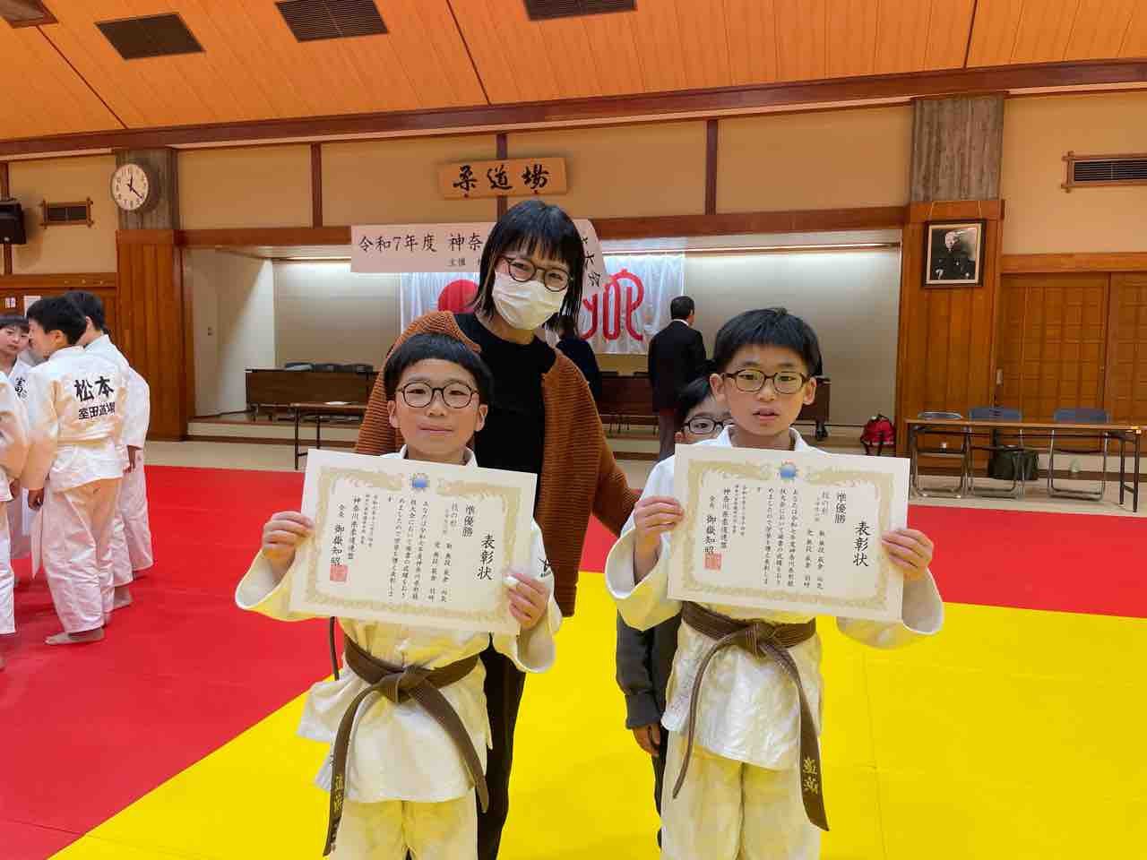 昇級試験は小学生限定(中学生は通常練習)です。中学生は2年生から横須賀地区柔道協会もしくは神奈川県柔道連盟の昇段試験(黒帯)に挑戦します。